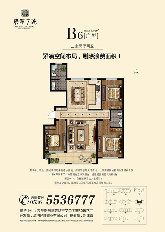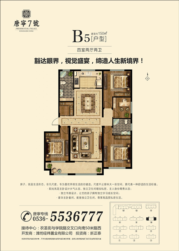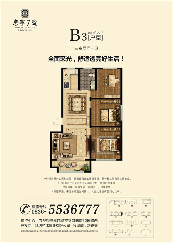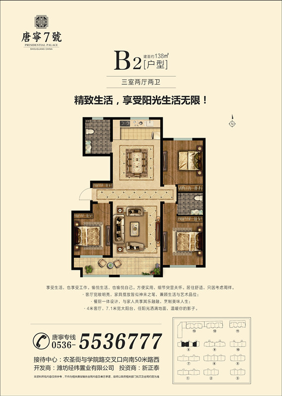 無論在地段、環境、配套、建筑、景觀、戶型設計以及物業管理等方面,都是壽光首屈一指的。擁有唐寧7號不僅是您身份和檔次的象征,也必將是您居住和投資的**佳選擇!