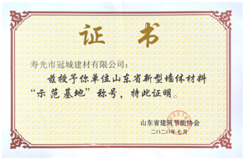 公司曾榮獲濰坊市守合同重信用企業(yè)、新型城鎮(zhèn)化建設(shè)**單位、壽光市依法行政監(jiān)督**單位等榮譽(yù),先后通過(guò)了質(zhì)量管理體系認(rèn)證、知識(shí)產(chǎn)權(quán)管理體系認(rèn)證。山東省新型墻體材料示范基地、山東省建筑節(jié)能協(xié)會(huì)常務(wù)理事、山東省建筑節(jié)能協(xié)會(huì)新型墻體材料分會(huì)副會(huì)長(zhǎng)單位。