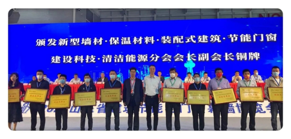 張永光院長(zhǎng)、吳理侃副會(huì)長(zhǎng)為山東省建筑節(jié)能科學(xué)技術(shù)獎(jiǎng)獲獎(jiǎng)單位頒發(fā)獎(jiǎng)牌